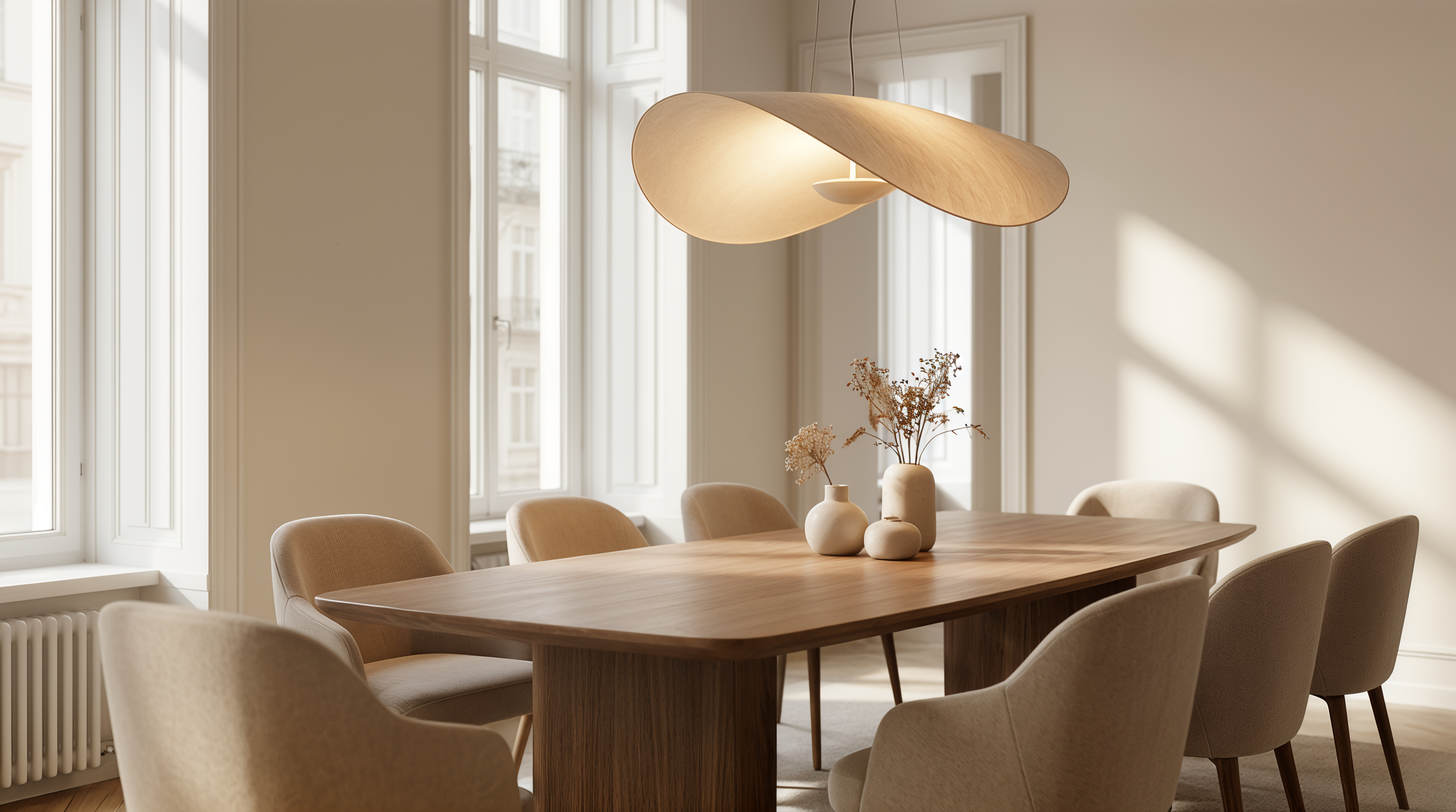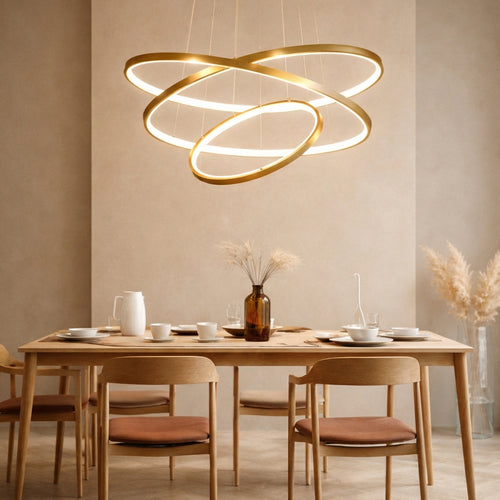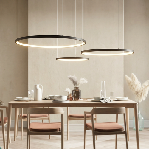 Richtlijn boven eettafel: onderkant lamp ± 60–75 cm boven het blad. Kies formaat in verhouding: